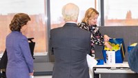 Kungaparet och landshövdingsparet fick varsin gåva från Command Center. I paketen fanns bland annat olika andningsskydd och visir.